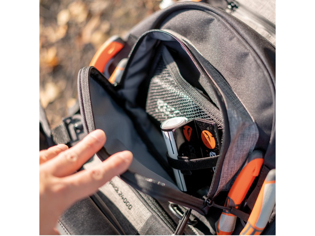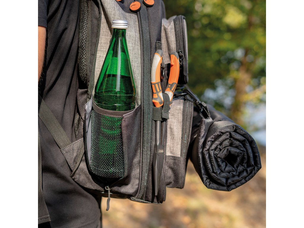 Do vodotěsné přihrádky snadno schováte povolenku a ostatní cenné věci. Spodní kapsa skrývá Tackle Box WP ve velikosti S. Po stranách jsou úchyty na flašky o objemu až 1,5l a mnoho dalších poutek a oček na kleště a pod., nebo na podložku por ryby Predator Mat.