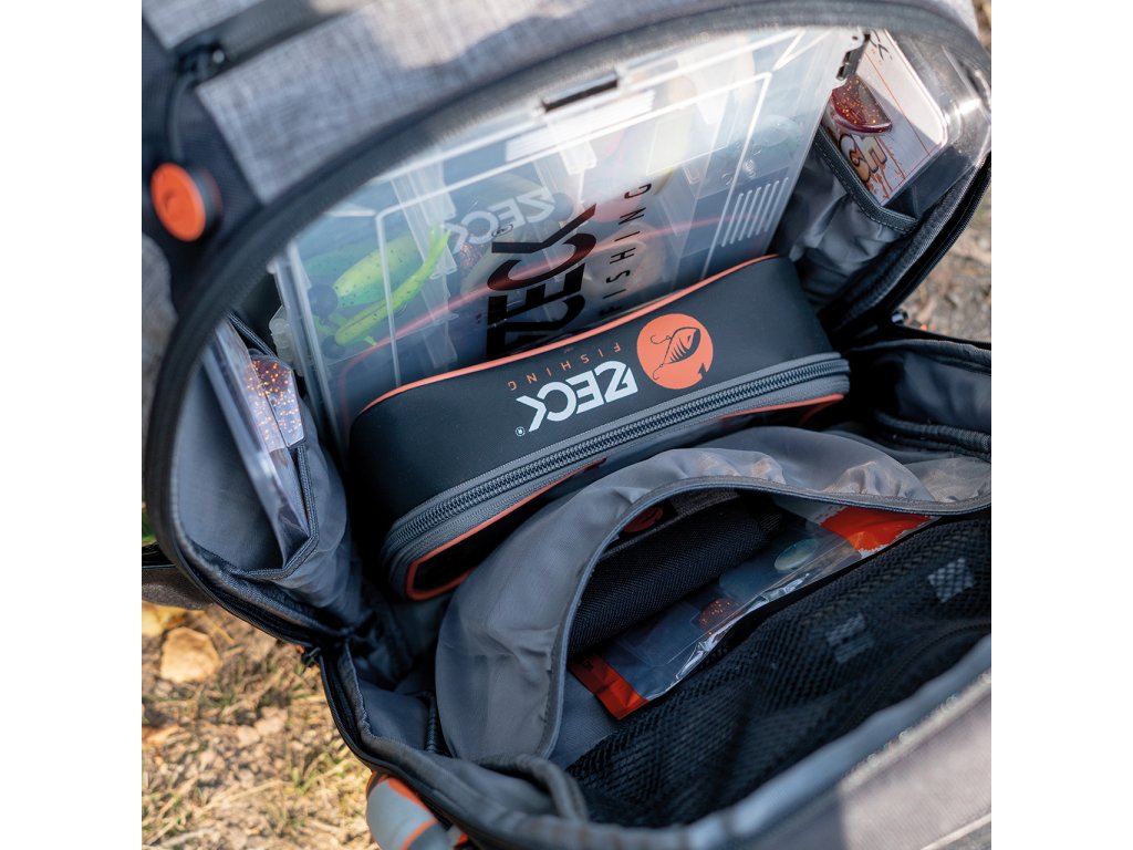 Hlavní přihrádka skýtá dost prostoru pro 3 Tackle Boxy WP ve velikosti L. Další přihrádky a síťované kapsy vám zajistí přehled a pořádek.